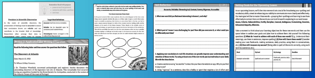 You can run all of these routines with the full set of Lesson 1 materials. That includes the target word list, syllabification tables, a context passage, an application activity, an error-spotting exercise, an online quiz game, and an answer key.